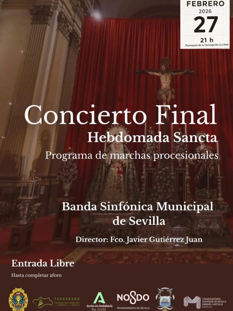 La Banda Sinfónica Municipal de Sevilla, bajo la dirección de su titular Francisco Javier Gutiérrez Juan, ofrecerá el próximo viernes 27 de febrero a las 21:00 horas, el Concierto de Clausura del IV Congreso Hebdomada Sancta, que tendrá lugar en la Parroquia de la Concepción Inmaculada.